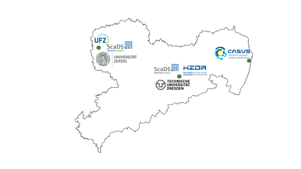IDEAS brings together the Helmholtz Center for Environmental Research (UFZ), the Helmholtz-Zentrum Dresden-Rossendorf (HZDR), Leipzig University, TU Dresden, the Center for Advanced Systems Understanding (CASUS) and the Center for Scalable Data Analytics and Artificial Intelligence (ScaDS.AI).